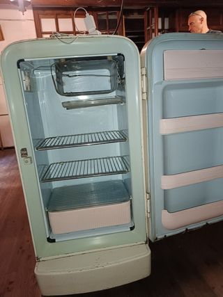 Splendido frigorifero vintage, in ottime condizioni estetiche. Ideale per chi cerca un pezzo unico per la propria cucina. - Colore verde pastello - Tre ripiani in metallo - Cassetto inferiore