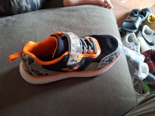 Vendo scarpe sportive Arena da bambino, in buone condizioni. Sono di colore nero e arancione con stampa mimetica. - Modello comodo e leggero - Perfette per attività sportive e tempo libero - Chiusura con velcro e lacci