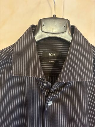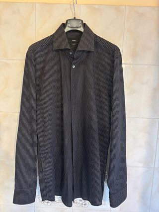 Camicia da uomo a maniche lunghe con un elegante motivo a righe. - Colore nero - Fantasia a righe verticali usata una volta