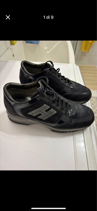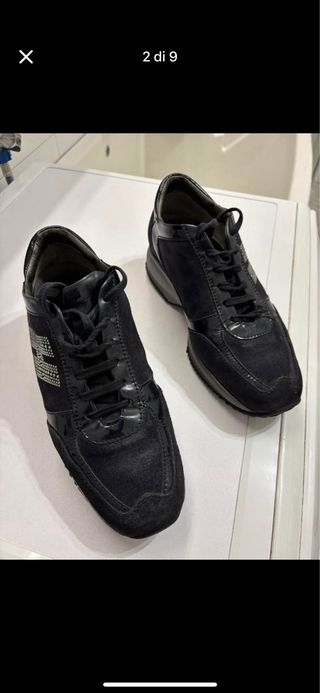 Scarpe Hogan da donna in colore nero. Modello elegante e versatile. - Dettaglio con strass a forma di H sul lato. - Inserti in vernice lucida. - Materiale scamosciato.