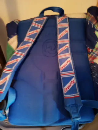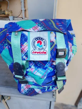 Zaino Invicta con un vivace design patchwork. - Fantasia patchwork con varie tonalità di blu e verde. - Logo Invicta sul davanti.