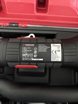 Levigatrice orbitale Parkside completa di accessori e valigetta. - Levigatrice con cavo di alimentazione. - Impugnatura aggiuntiva. - Valigetta rigida per il trasporto.