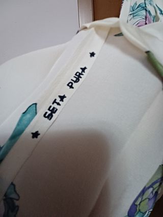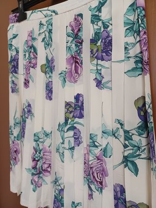 Gonna vintage in seta, un capo unico e originale. - Tessuto: Seta pura - Fantasia: Floreale multicolor con dettagli in blu e verde - Dettagli: con scritta Seta Pura e stelline