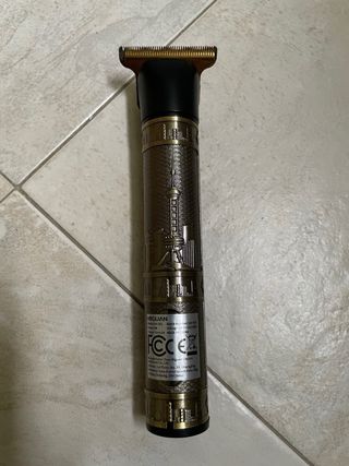 Rasoio elettrico per barba e rifinitore di precisione. - Design elegante con finiture oro e nero. - Include accessori per diverse esigenze di styling. - Ricaricabile tramite USB type C