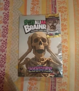 Album Allucinazione Cosmica della serie Italian Brainrot Trading Card Game. - Include una bustina di carte. - Copertina con teschio e scheletro.