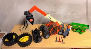 Vendo in blocco alcuni giochi con alcuni difetti (sul sito bruder vendono i ricambi) spandiconcime manca una ruota, nelle ruote gialle manca un attacco, e nel muletto telescopico manca il movimento della benna.