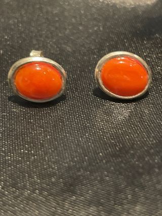 Coppia di orecchini con una pietra in corallo naturale di colore arancione/ rosso vivace. - Montatura in argento 925. - Design elegante e raffinato.