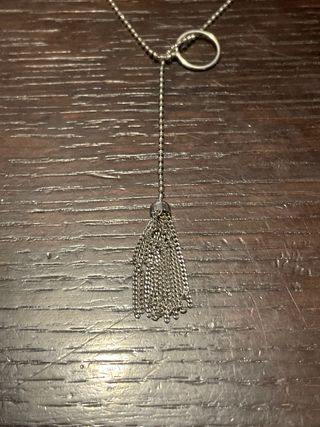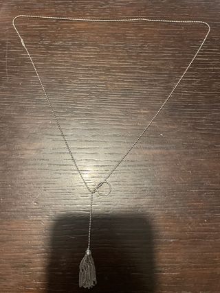 Collana lunga con un design moderno e raffinato. - Catena sottile con maglie a pallina. - Elemento centrale a forma di cerchio. - Pendente a forma di nappina interamente in argento 925 , lunga cm.60 regolabile