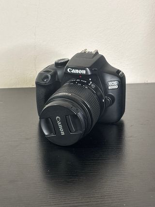 Fotocamera reflex digitale Canon EOS 4000D di colore nero. - Obiettivo Canon EF-S 18-55mm. - Tappo copriobiettivo Canon. - Flash integrato.