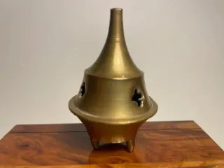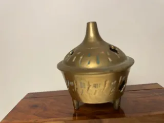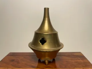 Elegante bruciatore di incenso in ottone, perfetto per aggiungere un tocco di stile a qualsiasi ambiente. - Design vintage con finiture dorate. - Struttura in metallo lavorato.