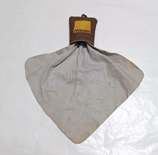 Panno in microfibra per la pulizia delle lenti. - Materiale: microfibra. - Colore: marrone con logo giallo. Panno di pulizia per lenti in microfibra Nikon (modello 8072) nella sua custodia . Prodotto usato in buone condizioni .