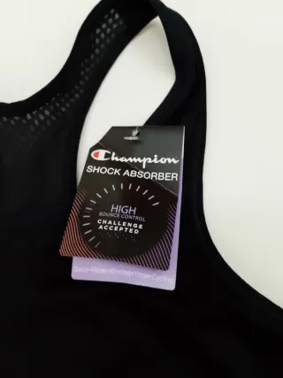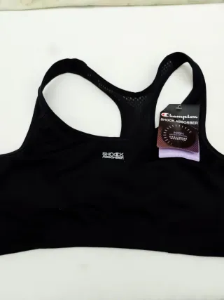 Reggiseno sportivo Champion nero, ideale per l'allenamento. - Design con spalline incrociate. - Tessuto traspirante. - Supporto elevato. Allego foto con misure taglia L