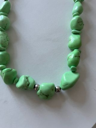 Collana realizzata con pietre di turchese naturale. - Pietre di forma irregolare. - Inserti metallici tra le pietre.bellissima collana in turchese antico e argento lunghezza da chiusa 58 cm