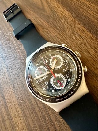 Swatch Irony Chrono Restless YCS4000AG (1998) in alluminio in ottime condizioni, con normali segni di usura. Cinturino in silicone. No scatola. Orologio testato e funzionante in tutte le sue parti. Batteria nuova.