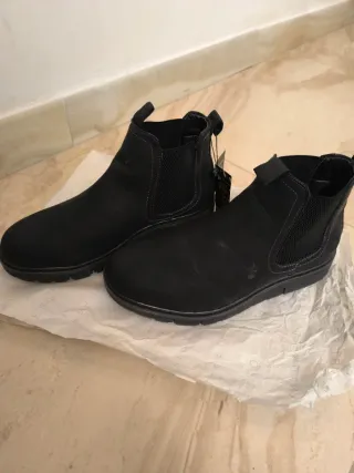 Eleganti stivaletti neri in stile Chelsea. Ottimo per sere eleganti o cerimonia. Mai usato. Intatto. Nuovo con cartellino e scatola. Mai usato. Comprato 90 euro sei mesi fa. - Tomaia in materiale sintetico. - Inserti laterali elasticizzati. - Linguetta posteriore per facilitare la calzata.