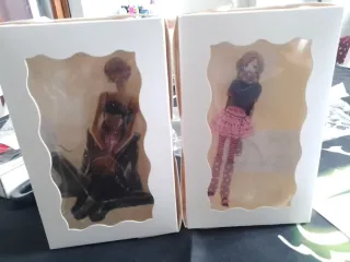 Set di supporti acrilici con figure. - Due figure in stile anime. - Supporti trasparenti con design a onda.
