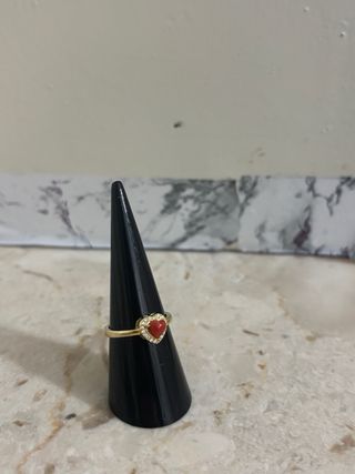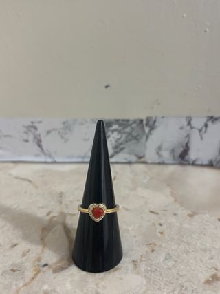 Elegante anello in argento 925 con un ciondolo a forma di cuore rosso in corallo. anello regolabile - Design a cuore con dettagli luminosi. - Argento 925 di alta qualità.