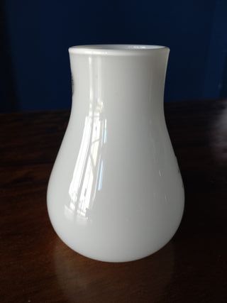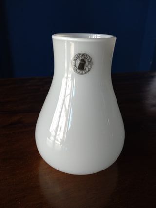 Vaso minimalista in vetro bianco di IKEA, disegnato da Barbro Wesslander e Pia Amsell. Questo vaso svedese fatto a mano presenta un'elegante silhouette curva e una finitura opaca liscia, che lo rendono un pezzo versatile sia per i fiori che per la decorazione. Firmato sul retro dai designer e contrassegnato con l'etichetta originale "Handmade Quality". Sebbene non sia più in produzione, questo progetto riflette la collaborazione di IKEA con i designer scandinavi tra la fine del XX e l'inizio del XXI secolo. Misure di riferimento in foto. - Design moderno e raffinato. - Finitura liscia e luminosa.