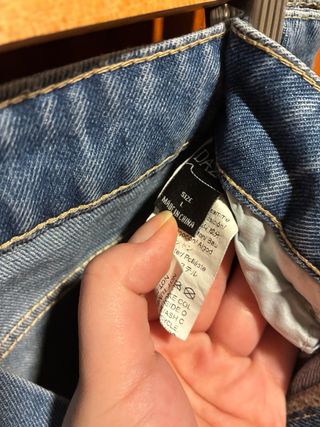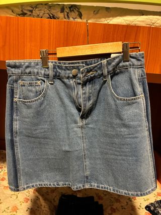 Minigonna in denim, un capo versatile per ogni occasione. - Tessuto denim resistente. - Design a vita alta. - Tasche anteriori. - Chiusura con zip e bottone.