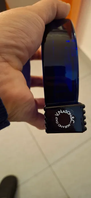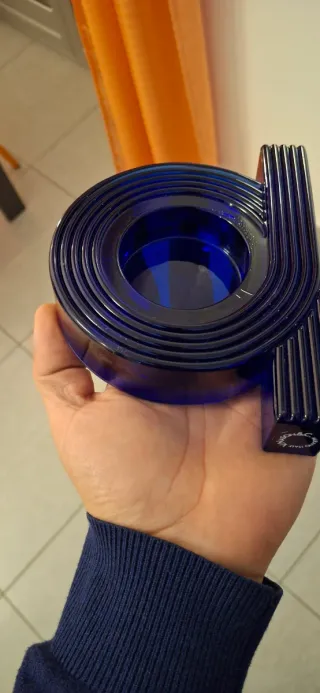 Posacenere a spirale in vetro di murano vintage con anelli blu cobalto. Si tratta di un posacenere o svuotatasche di vetro di Murano prodotto dalla ditta V. Nason & C.. La ditta, fondata da Vincenzo Nason negli anni '30, è rinomata per i suoi oggetti in vetro soffiato e incamiciato. Questo oggetto specifico, di un intenso colore blu cobalto, risale agli anni '70.