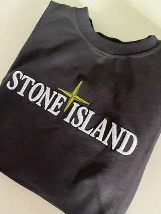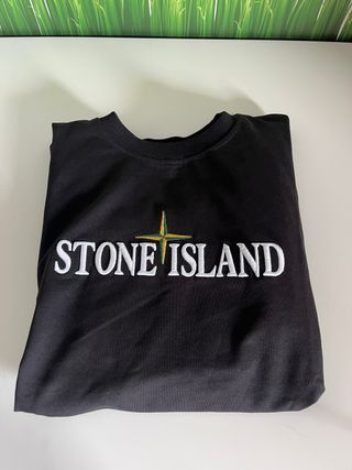 Felpa Stone Island con logo ricamato sul petto. - Logo a forma di rosa dei venti. - Scritta STONE ISLAND bianca ricamata.
