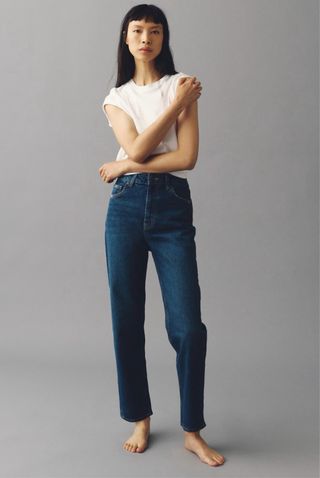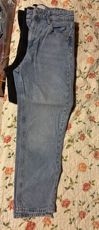 Lotto di tre paia di jeans. - Taglio dritto. - Vita alta. - Tessuto denim.
