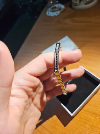 Elegante bracciale da uomo in acciaio inossidabile, con dettagli color oro, zirconi neri e bianchi. - Design a maglie. - Placca centrale decorata con inserti di zircone neri. - Offro pacco regalo in omaggio
