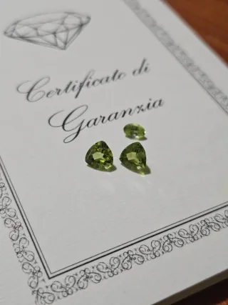 Bellissime gemme di Peridoto, perfette per collezionisti o per la creazione di gioielli. - Due gemme di Peridoto 2,76 ct - Taglio a trillion - Regalo terza gemma ovale - Certificato di garanzia