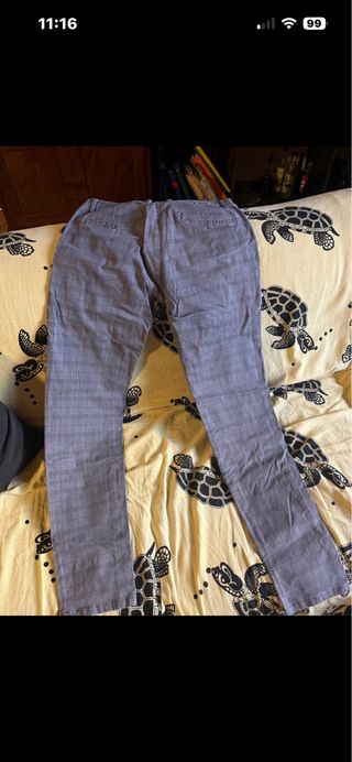 Eleganti pantaloni da uomo con un discreto motivo a quadri. - Vestibilità slim. - Tessuto leggero e traspirante. - Vita media con chiusura a zip e bottone.