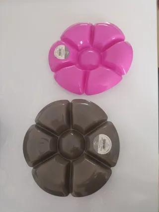 Set di due antipastiere. - Una con bordo rosa. - Una con bordo grigio.