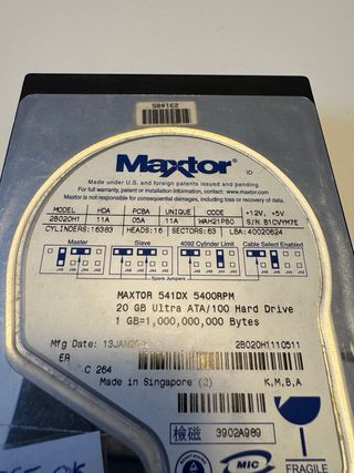 Vendo per inutilizzo hard drive della Maxtor da 20GB Ultra ATA/100, smontato da una Microsoft Xbox Classic OG (1 modello). L’hard disk viene venduto formattato e funziona su tutti i PC.