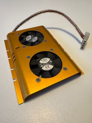 Vendo per inutilizzo dissipatore per hard disk da 3,5 pollici composto da 2 ventole. Il prodotto é funzionante.