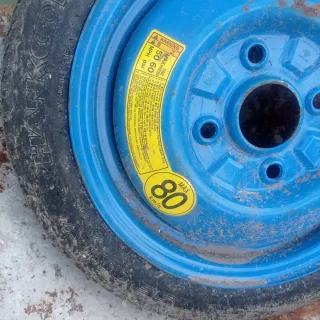 Ruotino di scorta nuovo, marca Hankook. - Misura: 125/80 R15. - Velocità massima: 80 km/h. - Pressione gonfiaggio: 420 kPa (60 PSI). - Cerchio blu.