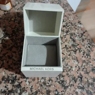 Scatola originale Michael Kors, perfetta per custodire il tuo orologio. - Design elegante. - Interno foderato in tessuto grigio.
