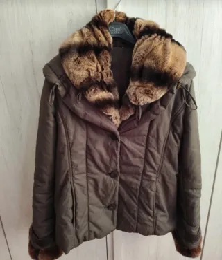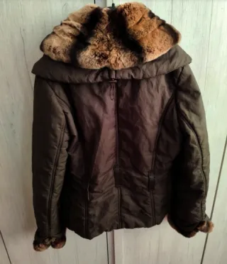 Elegante piumino con dettagli in pelliccia. - Collo in pelliccia staccabile. - Polsini in pelliccia staccabili. - Chiusura con bottoni.