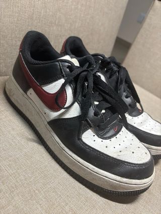 Scarpe Nike Air Force 1 con una combinazione di colori nero, rosso e bianco. - Design iconico. - Tomaia in pelle. - Suola in gomma.