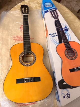 Chitarra classica Bontempi, modello Genius, ideale per chi inizia a suonare. - Corpo in legno. - Corde in nylon. - Meccaniche dorate. Mai usata, ancora con confezione originale.