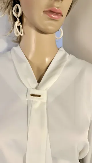Bella ed elegante blusa in stile classico, il dettaglio originale a forma di cravatta conferisce alla camicetta un aspetto raffinato ed elegante... ideale per il lavoro in ufficio e per qualsiasi altra occasione formale... nuova...
