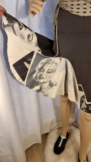 Incantevole gonna vintage anni 80, (una delle mie gonne adorabile), originale straordinario modello con stampa dello foto Merelin, 92% cotone. Una vestibilità perfetta, un look accattivante e un design unico contribuiscono a rendere il look fashion e unico.