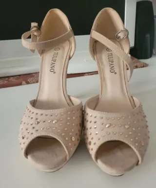 Eleganti scarpe da donna Tulipano. - Colore beige con dettagli oro. - Misura 37.10pezxi.misure dal 37al38