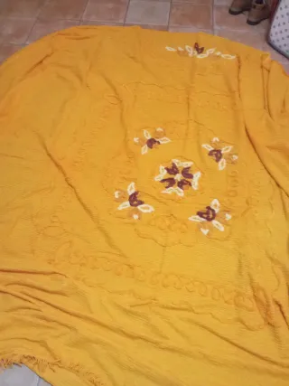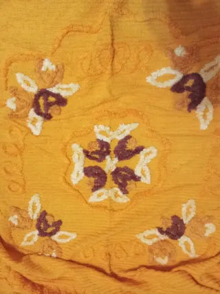 Coperta vintage in ciniglia con un design floreale ricamato. - Motivo floreale centrale. - Bordi decorati. - Texture a coste.