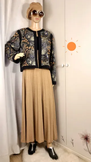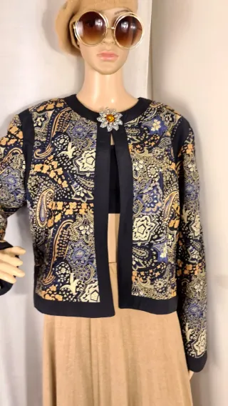 Cerchi qualcosa di veramente originale? Questo cardigan unisce uno stile etnico ricercato a un comfort imbattibile. Il tessuto in 100% viscosa cade perfettamente grazie al taglio dritto e rilassato, un capo insolito e di grande impatto visivo, estremamente versatile, che può essere abbinato a un'ampia varietà di look, stupendo sia con gonne e pantaloni lunghi, ma anche super cool con dei pantaloncini larghi. Un capo insolito e magnetico, ideale per chi ama distinguersi con classe...in ottimo stato