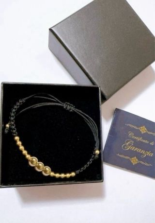 Bracciale in stoffa con sfere lucide degradé oro giallo 18kt 750 no placcato - no altri metalli taglia unica regolabile articoli nuovi, corredati da astucci shopper e garanzie