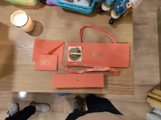 Set completo per bracciale Dodo, include scatola, busta, bollini, nastro, busta letterina e busta garanzia. Ideale per natale - Scatola color arancio. - Busta coordinata con logo Dodo. - Nastro decorativo con logo Dodo.