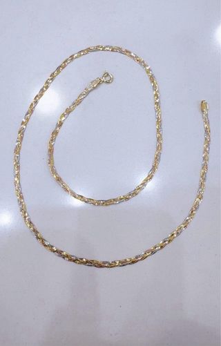 Elegante collana in oro 9kt 375, realizzata con fili di tre colori diversi che creano un effetto sfaccettato e luminoso (Oro giallo, Oro rosa e oro bianco) - Design a fascia intrecciata. - Oro giallo, bianco e rosa 9kt 375 - Lunghezza 45cm - Spessore: 2,5mm - Chiusura di sicurezza: Maglia a molla articolo nuovo, corredato da astuccio shopper e garanzia
