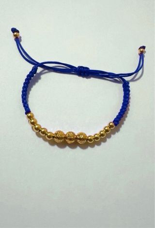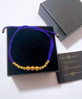 bracciale in stoffa blue con sfere lucide e diamantate degradè in oro giallo 18kt 750 no placcato - no altri metalli taglia unica regolabile articolo nuovo, corredato da astuccio shopper e garanzia
