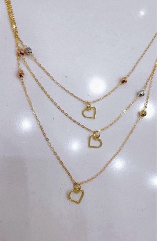 Collana a 3 fili con cuori in oro tricolore 18kt 750 Lunghezza 45cm Articolo nuovo, corredato da astuccio shopper e garanzia