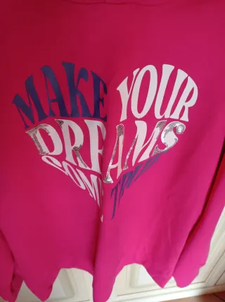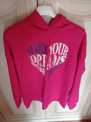 Felpa con cappuccio di colore fucsia vivace, con una stampa a cuore sul davanti. Taglia 13/14 anni. - Stampa Make Your Dreams a contrasto. - Design con cappuccio. - Maniche lunghe.