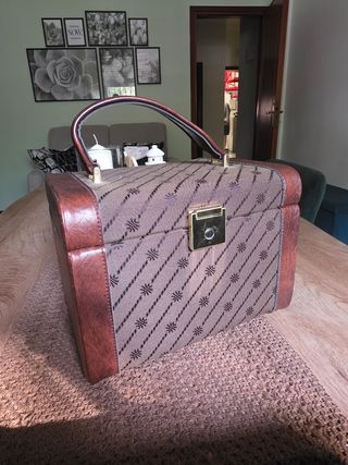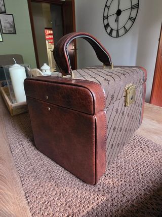 Bellissima trousse vintage, perfetta per chi ama lo stile retrò. - Struttura robusta in pelle e tessuto. - Manico ergonomico per un trasporto comodo. - Chiusura di sicurezza con serratura. - Design elegante e senza tempo.