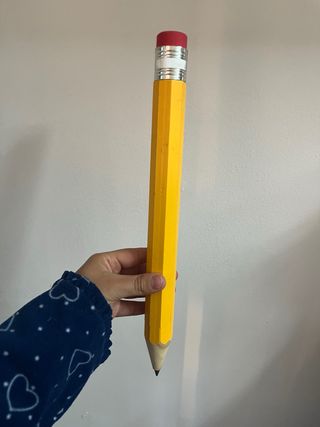 Matitone decorativo di grandi dimensioni, perfetto per un tocco originale. - Colore giallo vivace. - Dettaglio gommino rosso sulla punta. - Materiale in legno.